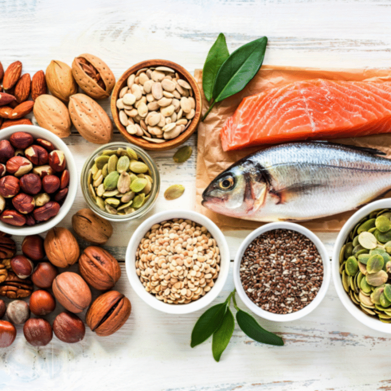 Omega 3 là loại chất béo tốt hàng đầu cho tim mạch, trí nhớ, cải thiện chất lượng giấc ngủ, và đóng vai trò lớn trong việc duy trì làn da ẩm mượt, mái tóc chắc khỏe. Omega 3 có nhiều trong cá hồi, quả bơ, hạt chia, và hạt óc chó. Dưỡng chất này hoàn toàn an toàn và được khuyến nghị cho cả phụ nữ mang thai, trẻ em và người lớn tuổi.